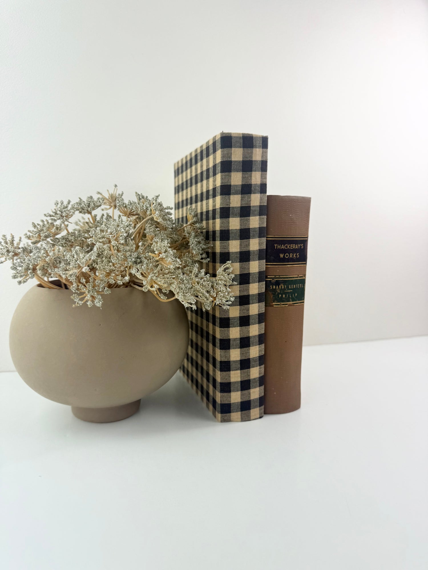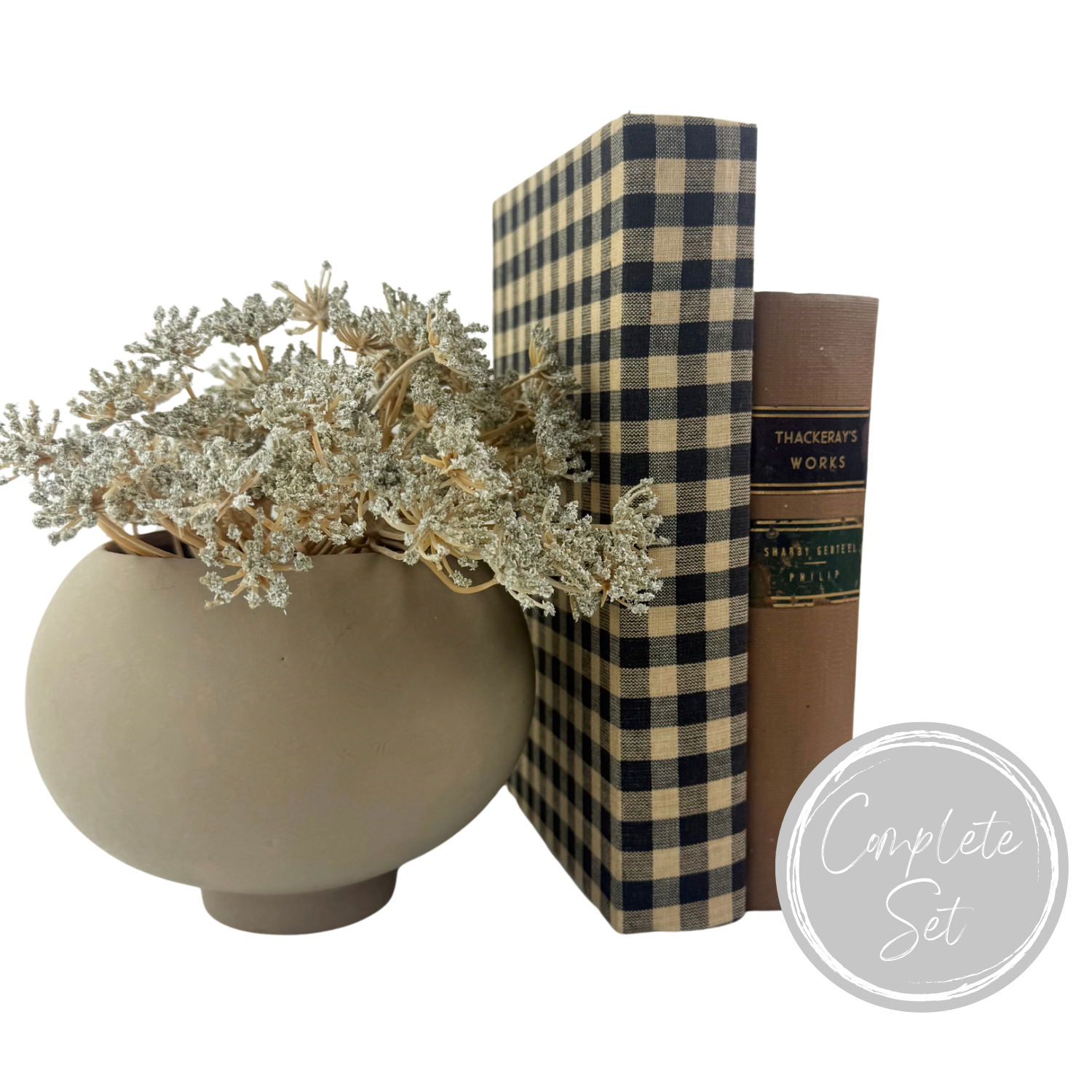 Vintage and fabric wrapped books for shelf decor and decorating your home are the perfect living room accessory. You can use book sets and book bundles to add texture, height, and color to your coffee table, accent tables, and shelf decor. Fabric Wrapped Quality is Unmatched: Brand New Books (other sellers wrap used books). Real, authentic books in various genres. Fully wrapped (cover, spine, and inside cover) for a cohesive, seamless look. Completely solid color throughout (can't see through fabrics and linen). Natural spine that doesn't look boxy like faux books. Intense quality control. In stock, ready to ship. Elements researches current trends and what will be popular in the upcoming season in order to curate color combinations and patterns. Frequently Asked Questions: 1.) You will receive these exact books. Typical books range from 8.5-9.5 inches tall and 5.5-6.5 inches wide with various spine widths. 2.) Price is for all books shown in the photograph. ***Purchase includes books only. Does not include accessories used in photos The Elements Difference! We strongly believe our earth is a valuable resource to our world. We are committed to doing our part in working to reduce waste and excessive items being sent to our landfills. We give books a new life in your home decor. We strive to use every portion of each and every book that is collected from partners across the nation.