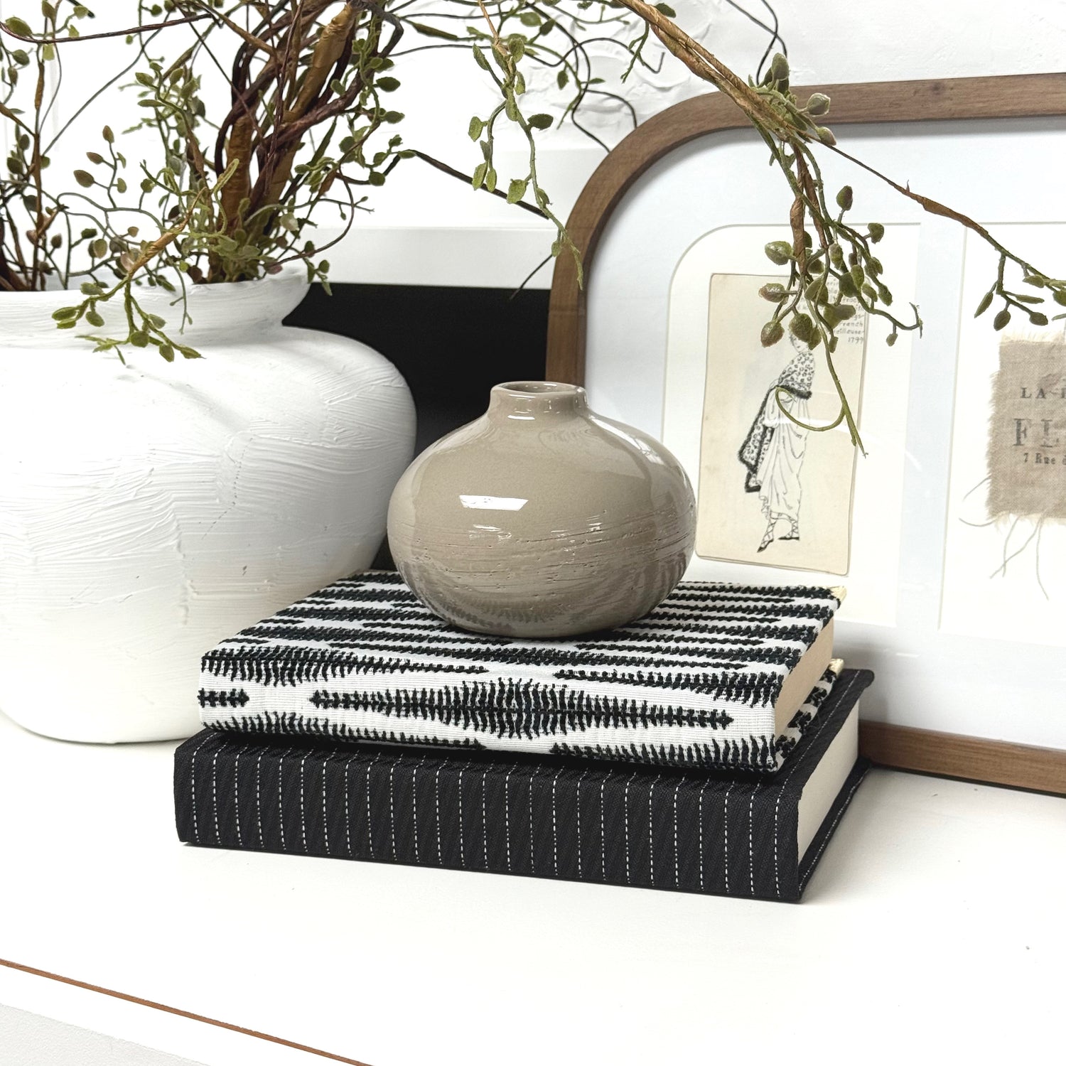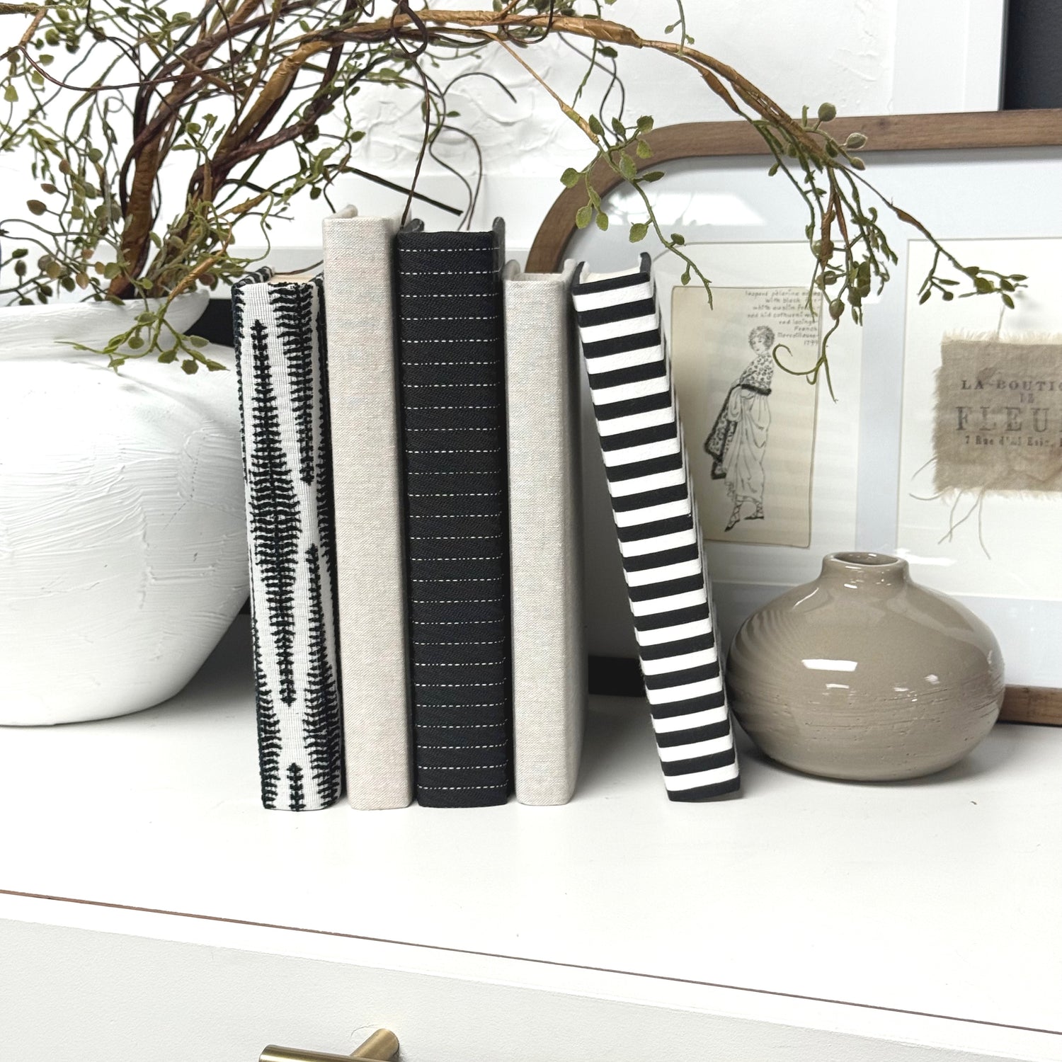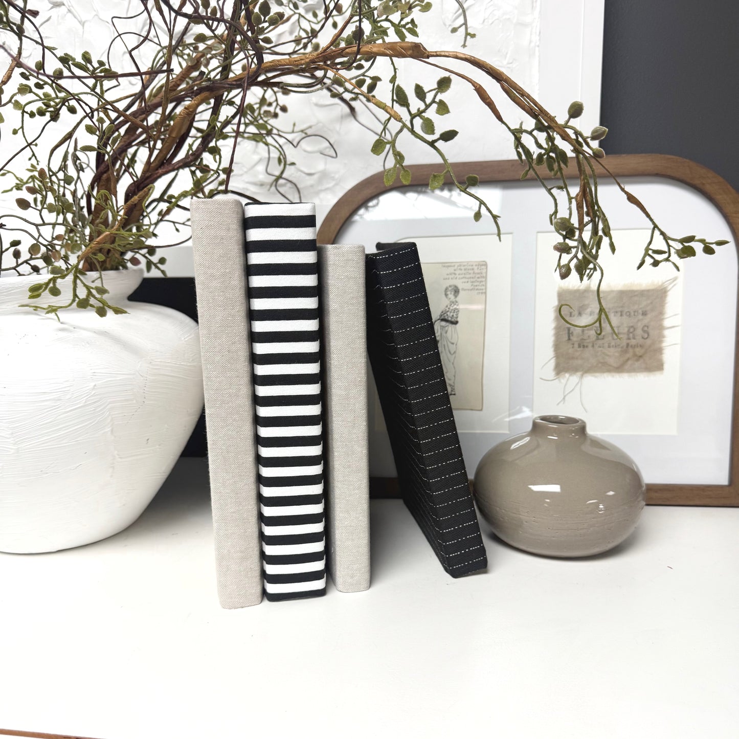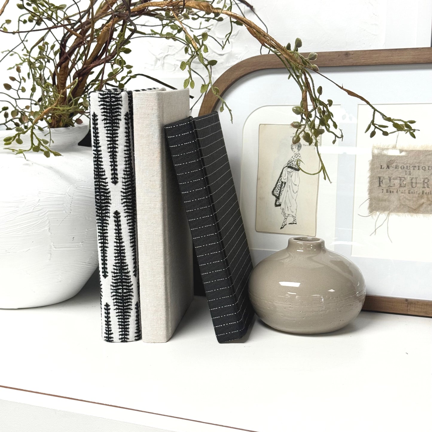 Fabric wrapped books for shelf decor and decorating your home are the perfect living room accessory. You can use book sets and book bundles to add texture, height, and color to your coffee table, accent tables, and shelf decor.