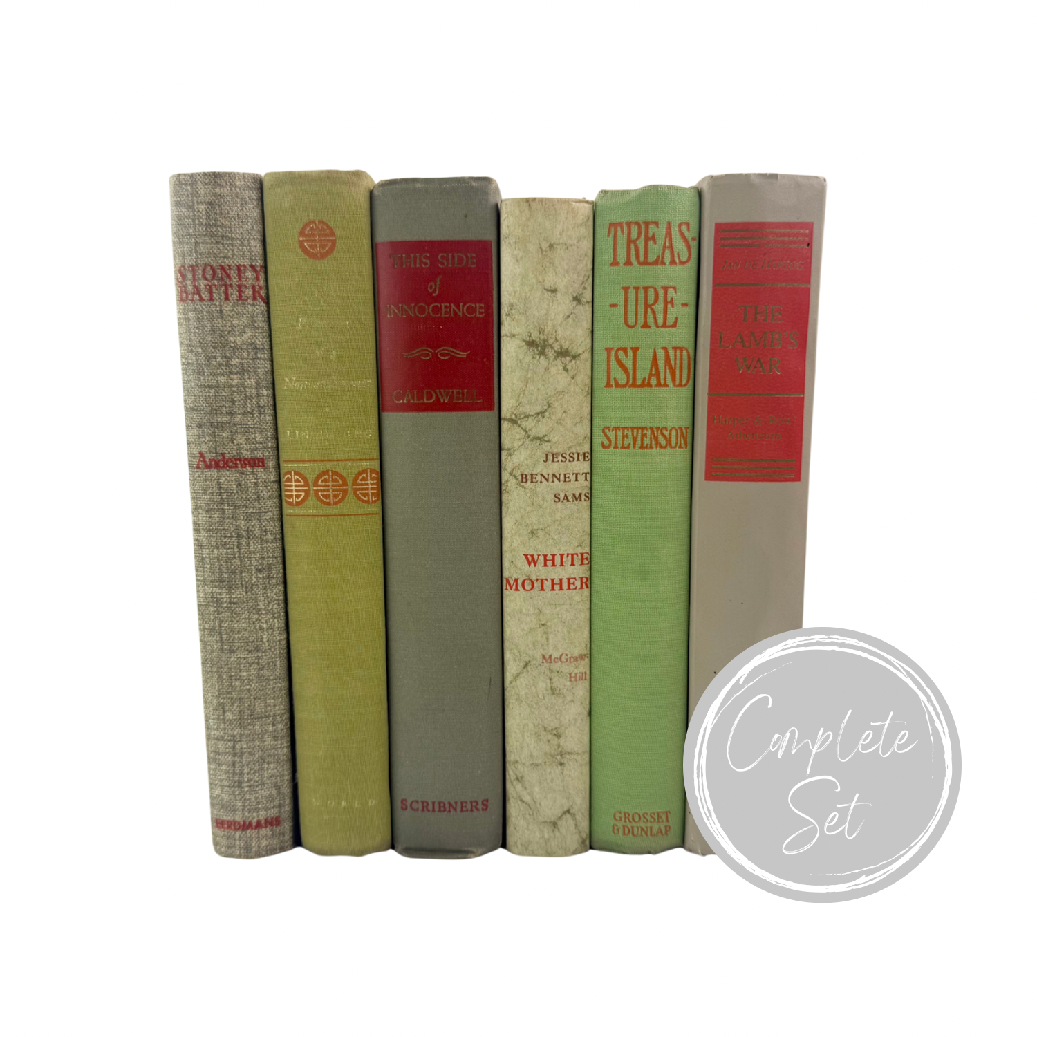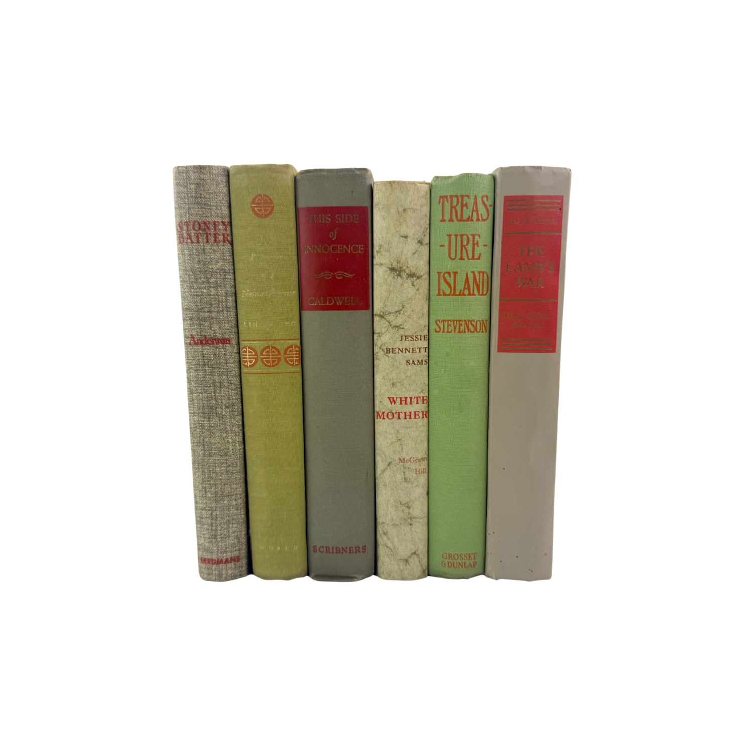 Green decorative books for shelf decor and coffee table decor. Perfect home decor to elevate your living room and accent tables using book sets and curated book bundles in styles ranging from linen covered books to vintage books.
