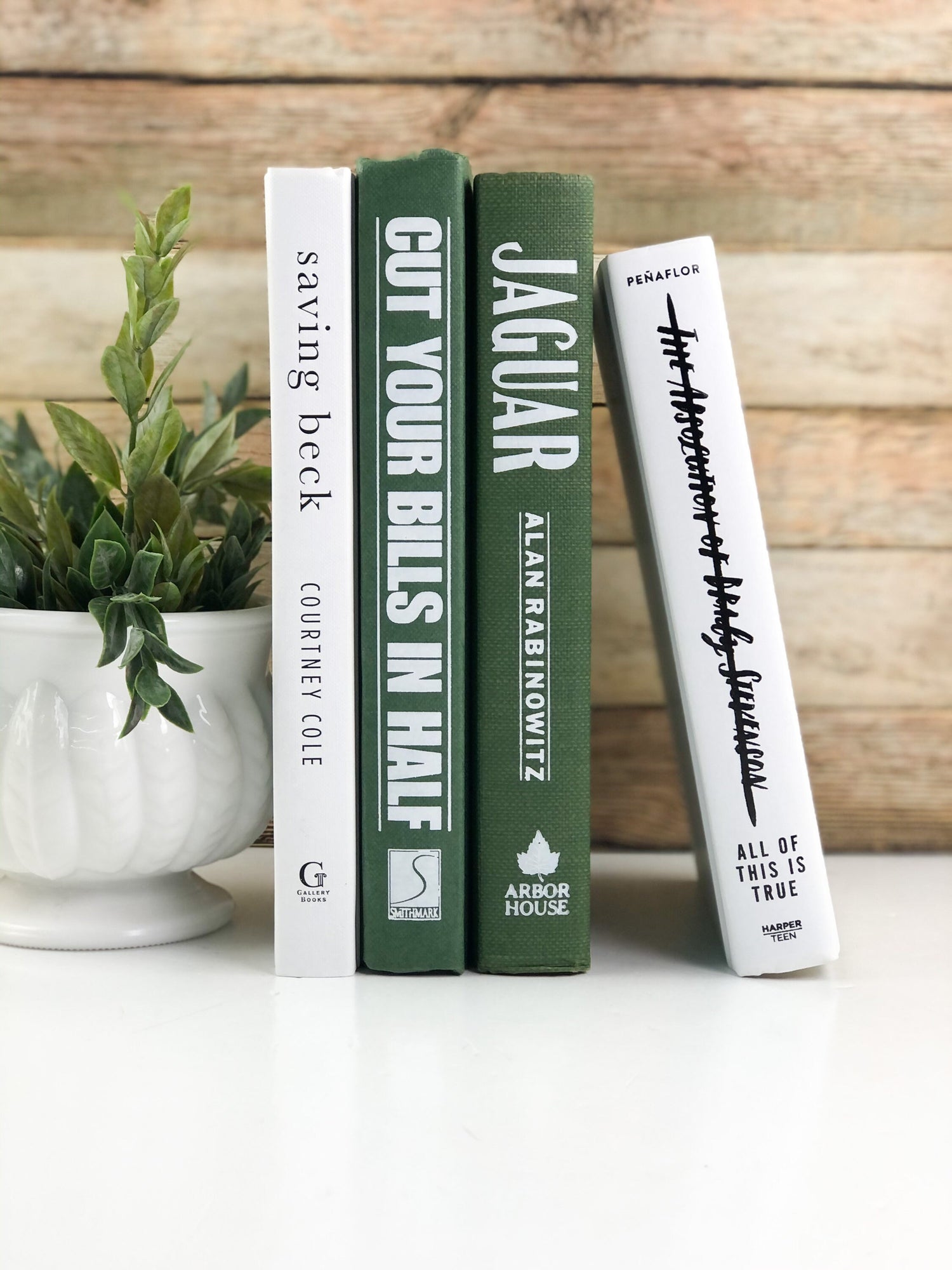 This green and white decorative book set is perfect for any mantel or shelf decor. Whether you are looking to add height to your shelves or simply a pop of color, adding decorative books can tie an entire design together.