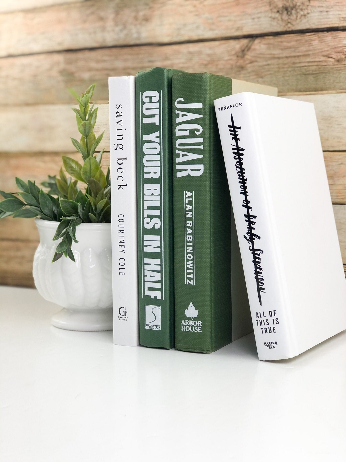 Green decorative books for shelf decor and coffee table decor. Perfect home decor to elevate your living room and accent tables using book sets and curated book bundles in styles ranging from linen covered books to vintage books.